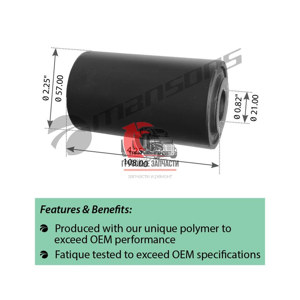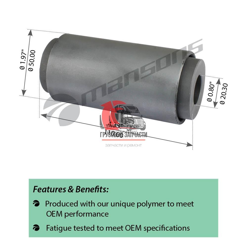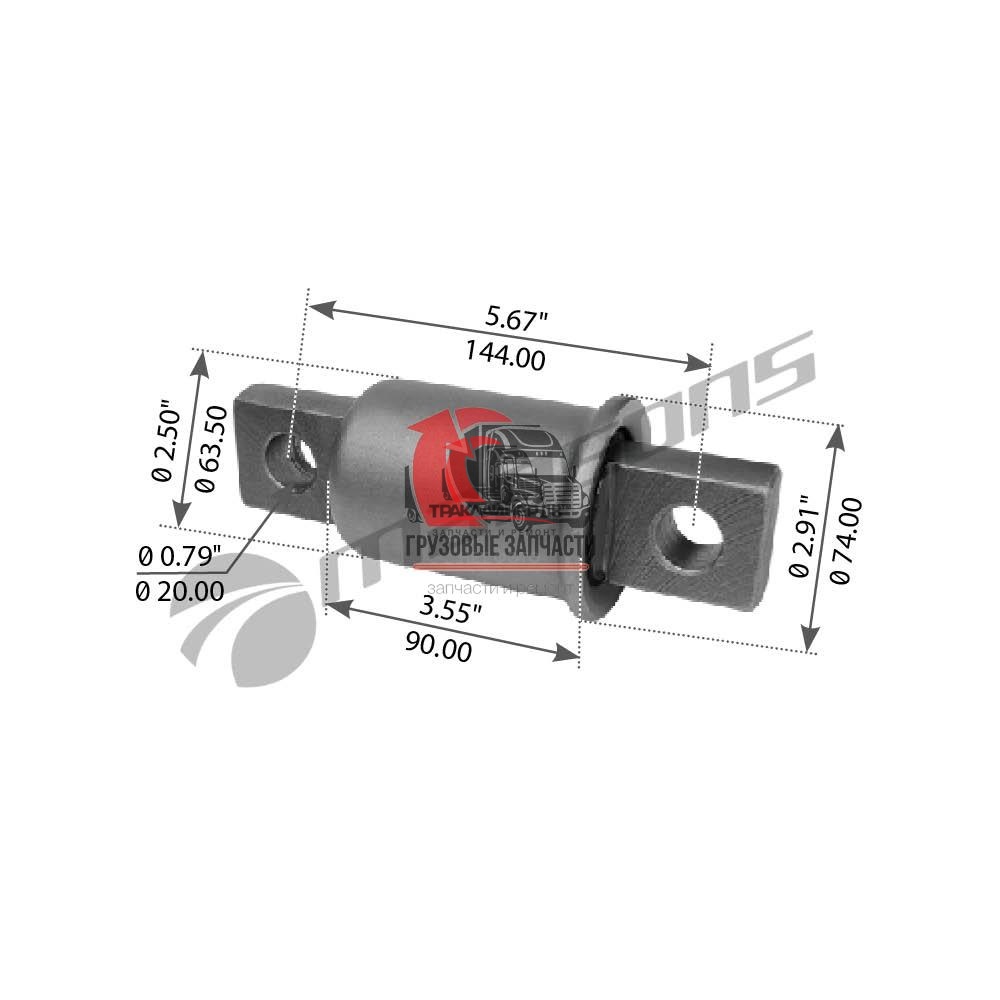 | Сайлентблок тяги реактивной задней тягача OD=54,1mm/L=111mm VOLVO VNL 670 Gen 2 (2004-2018), TRB6199 Много |
