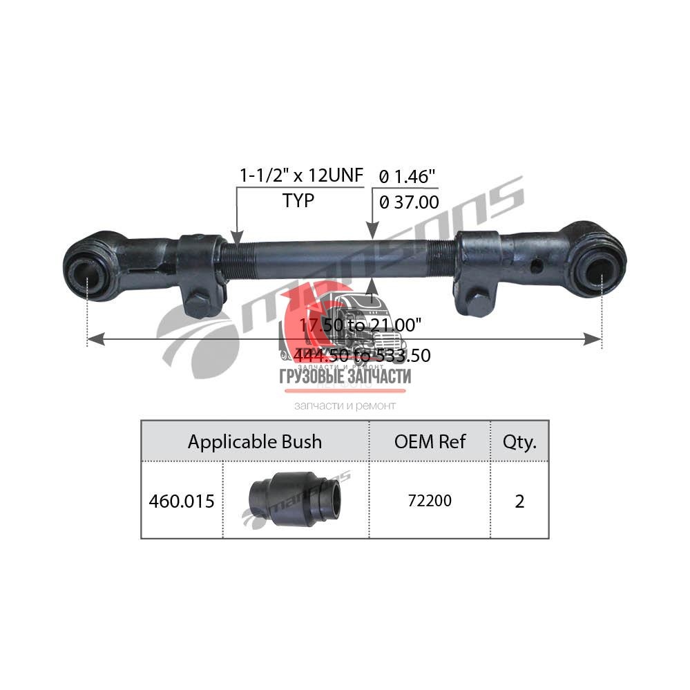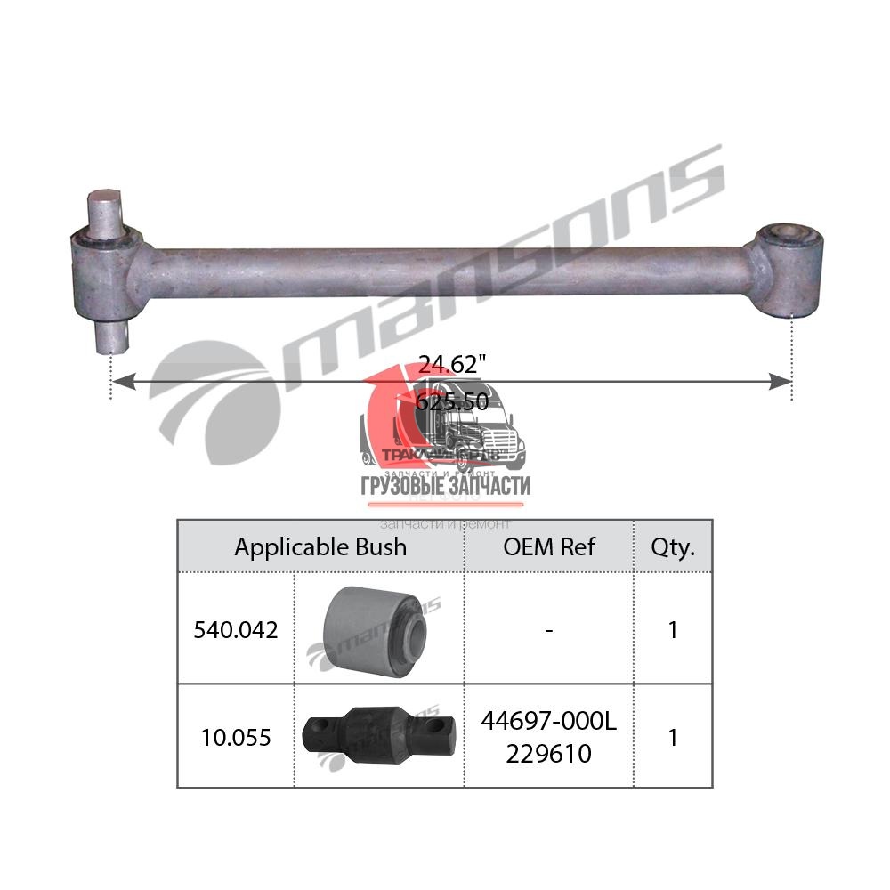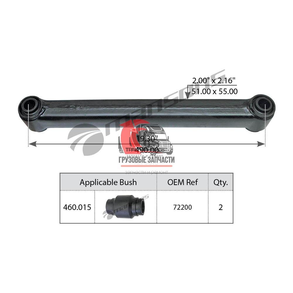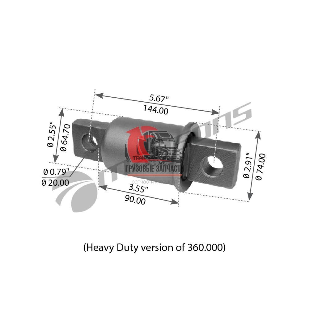 | Сайлентблок тяги реактивной задней тягача OD=54,1mm/L=111mm VOLVO VNL 670 Gen 2 (2004-2018), TRB6199 Много |