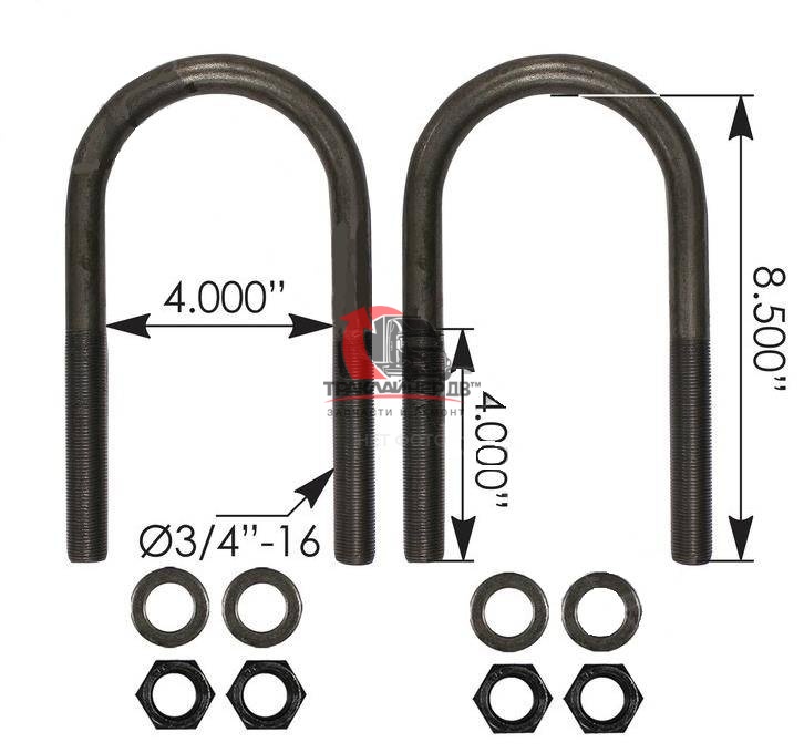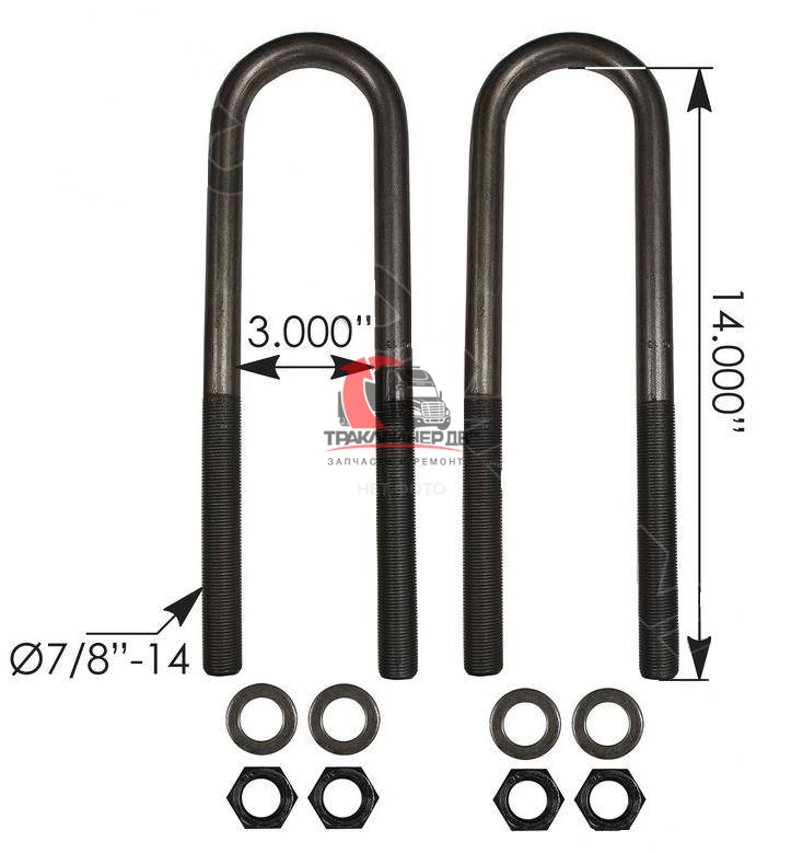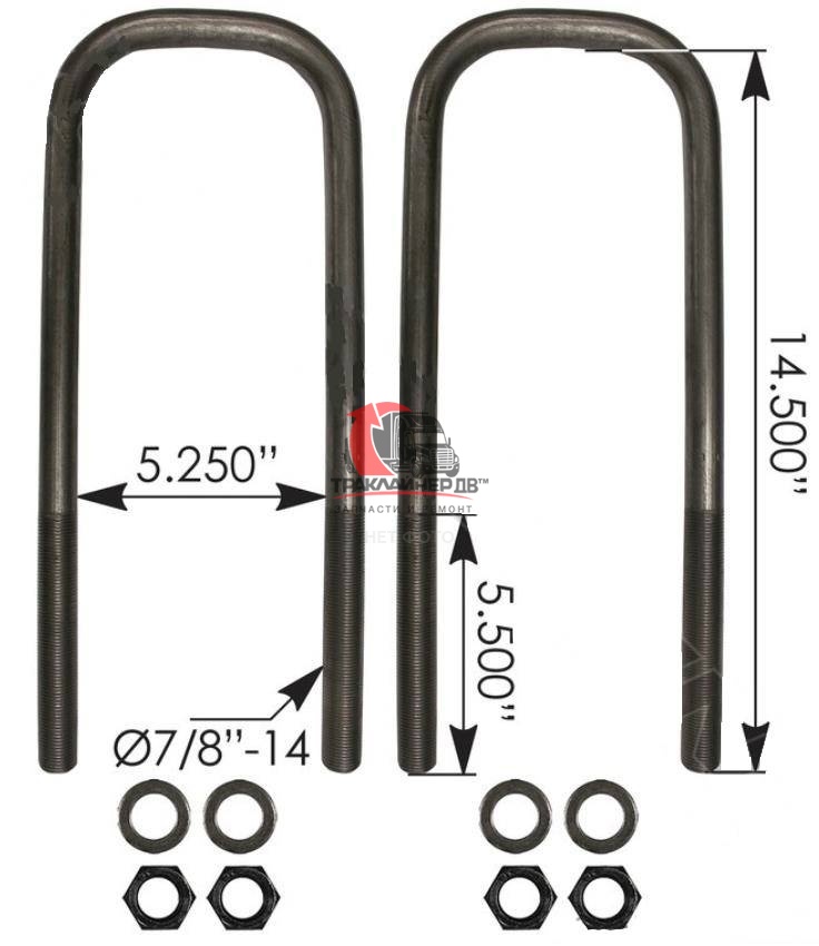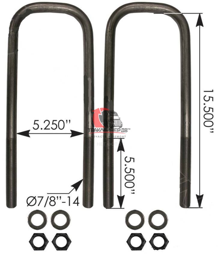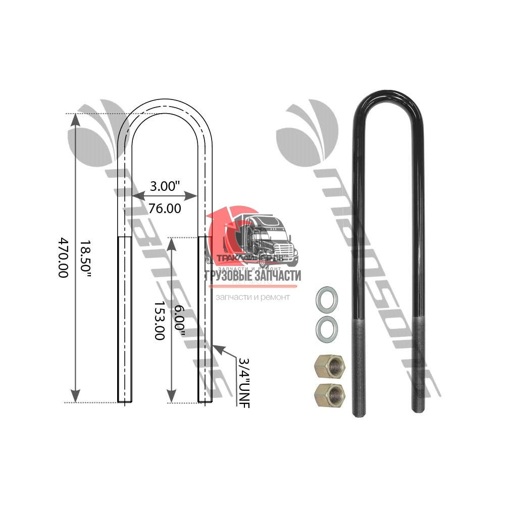 | Стремянка рессоры тягача передняя U-образная (с гайками) OD=19mm/L=216mm FLC/VOLVO VNL, AUBK8154-083 Много |
