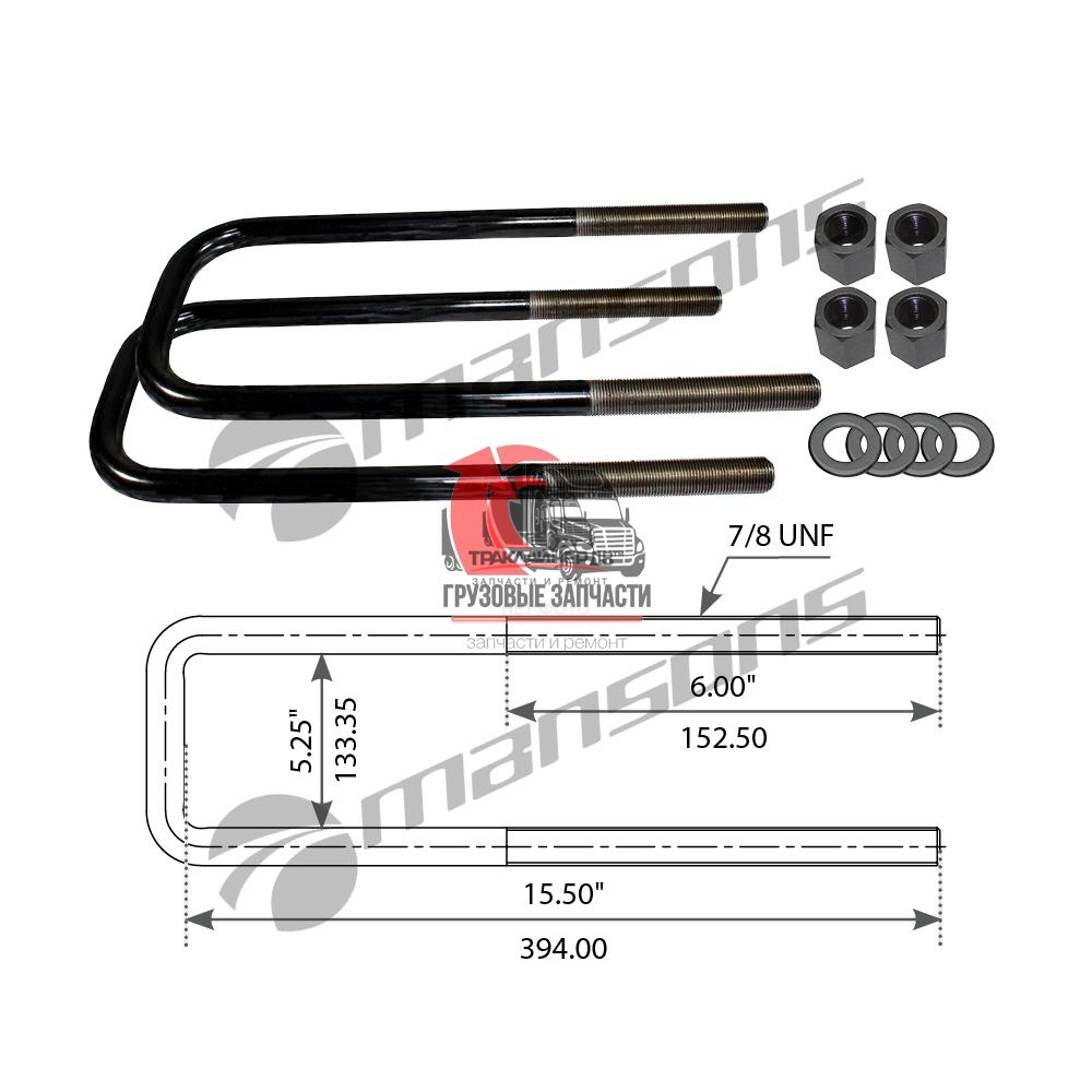 | Стремянка рессоры тягача задняя U-образная (с гайками) OD=22mm/L=425mm INTER 9200/9400, AUBK8166-166 Много |